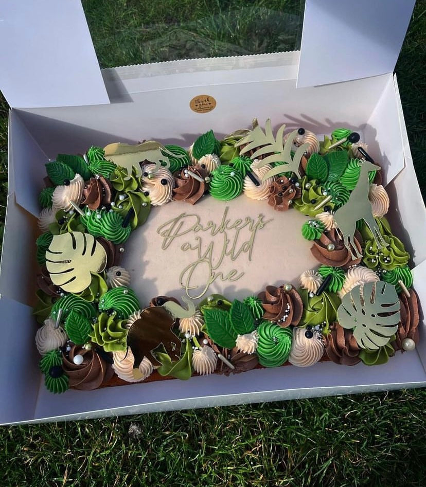 Safari cake topper set, sheet cake topper set includes personalised wording cake topper for middle of the cake, 3 safari animals & 3 safari leaves